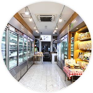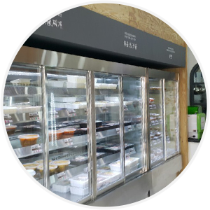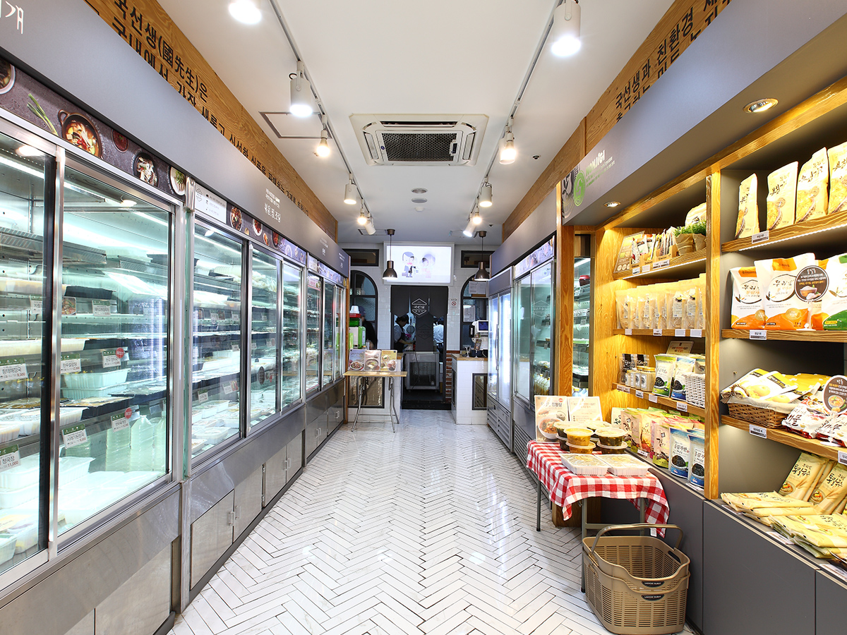 블랙과 그레이 의 조합으로 진입부터 세련되고 카페 같은 분위기를 연출하여 CLIENT 에게 기존 반찬가게 이미지를 탈피하는 파사드 연출.