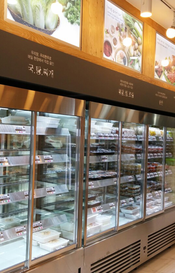 가정요리 포장전문점의 특성에 맞게 방문객에게 미각과 구매욕구를 느낄 수 있도록 디자인